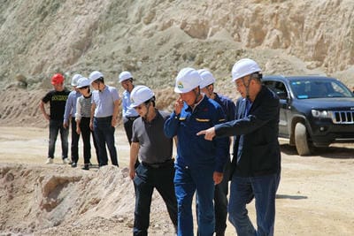 ? ? ? ?陈贵林董事长在大陆槽稀土矿瞭望平台上鸟瞰矿山全景,听取了矿山开采情形、车间加工情形以及矿山外围地质勘查情形,详细相识了矿山开采与绿色矿山建设历程中遇到的难点,并就相关问题提出指导性意见。